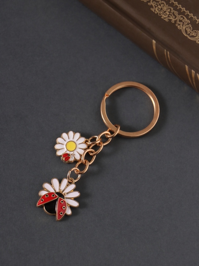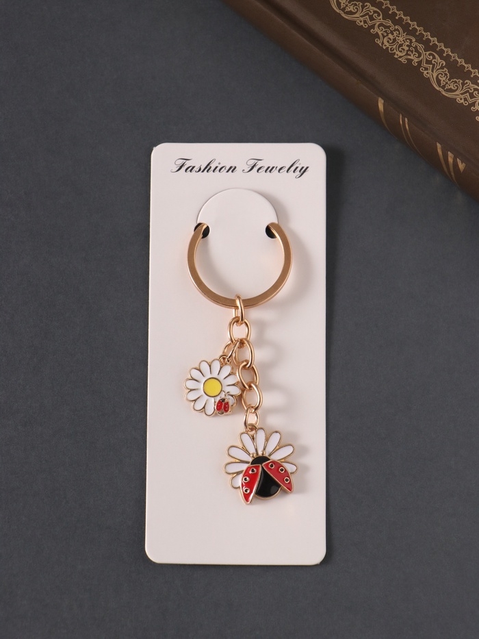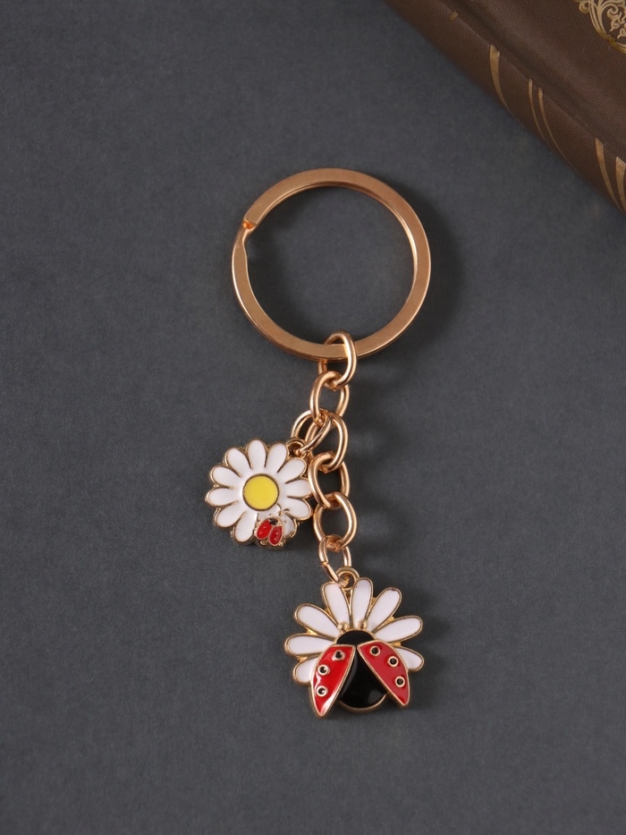 Брелок металл, эмаль "Божья коровка и ромашка" 9 см