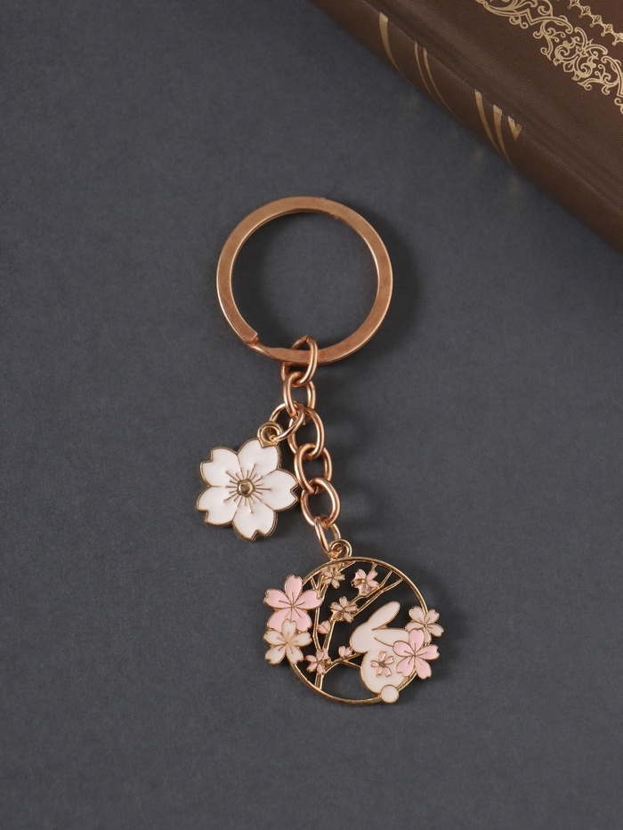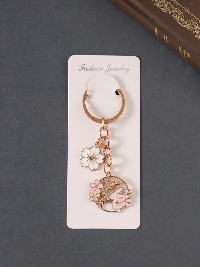 Брелок металл, эмаль "Зайка и сакура" 9 см