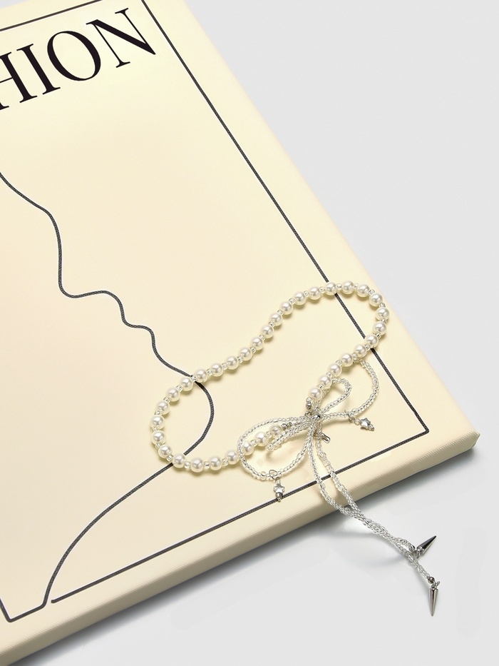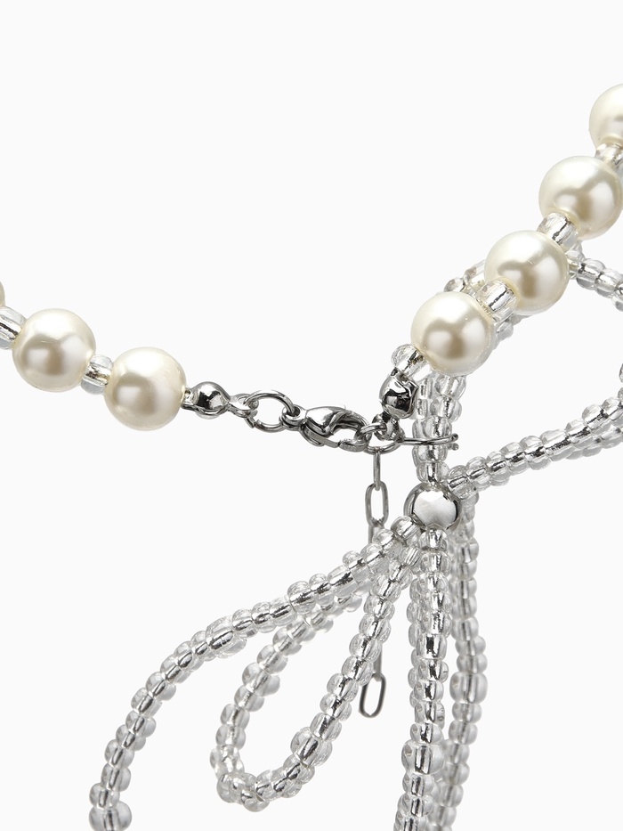 Бусы с жемчугом «Бантик» двойной, цвет белый в серебре, 37 см