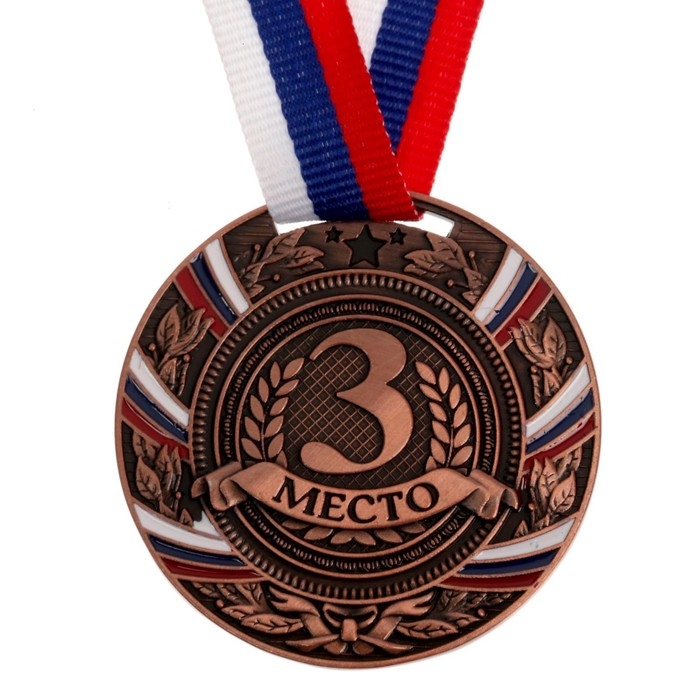 Медаль призовая 013, d= 5 см. 3 место, триколор. Цвет бронза. С лентой