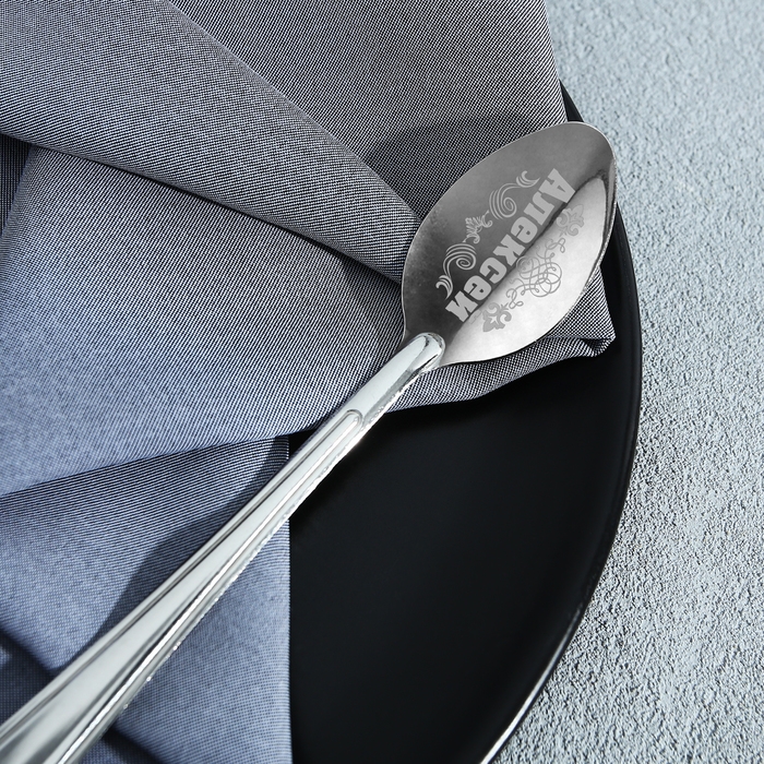 Ложка с лазерной гравировкой и изящной рукояткой преподносится на красочной открытке. На оборотной стороне изделия специально отведено место для подписи: кому и от кого был вручён подарок.