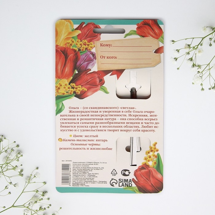 Ложка с лазерной гравировкой и изящной рукояткой преподносится на красочной открытке. На оборотной стороне изделия специально отведено место для подписи: кому и от кого был вручён подарок.