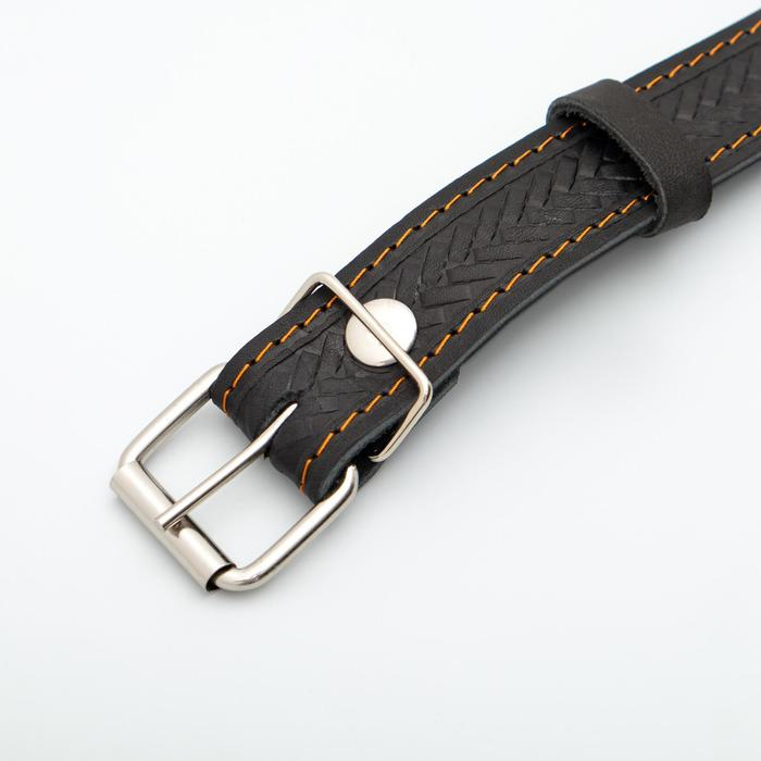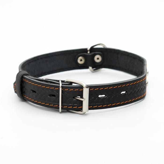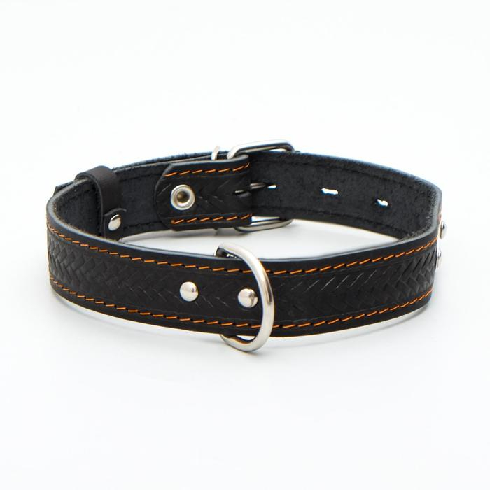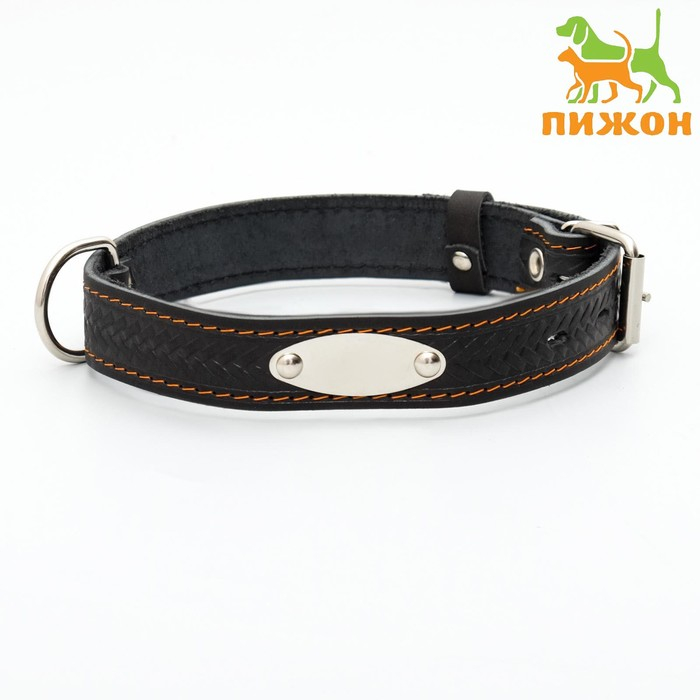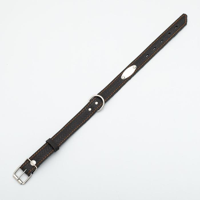 Ошейник кожаный тисненый однослойный с табличкой, 60 х 3 см, ОШ 45-57 см, чёрный
