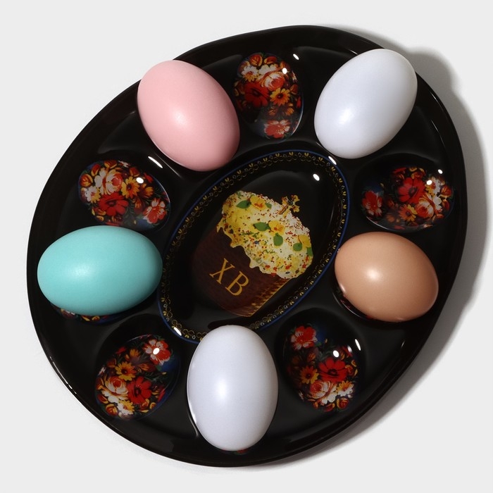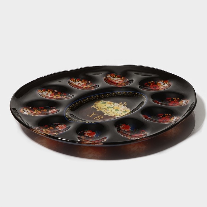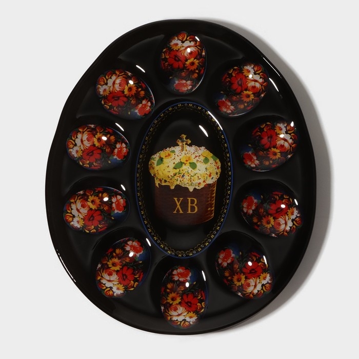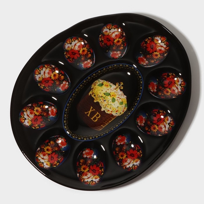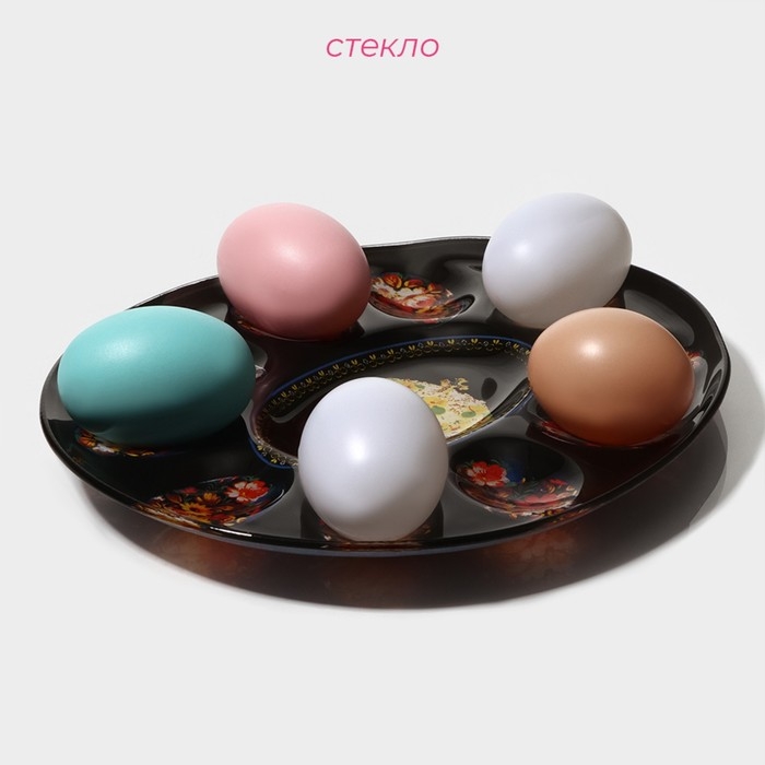 Подставка для яиц Доляна «Пасха», 10 ячеек, 24×20,5 см, стекло, цвет чёрный