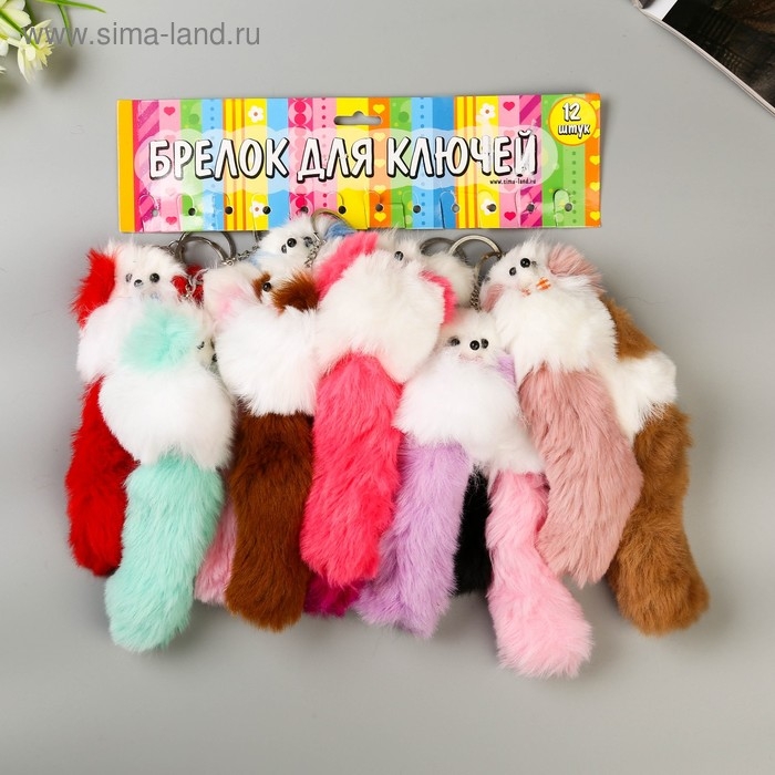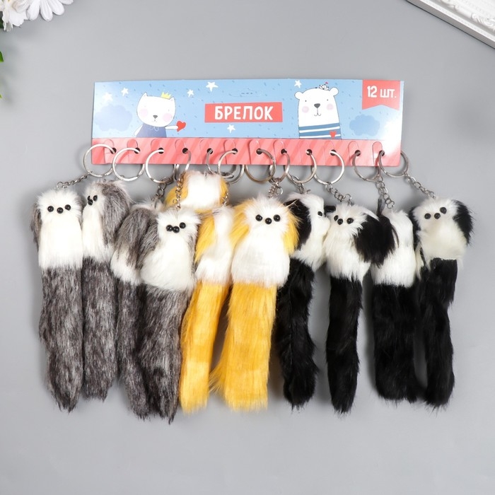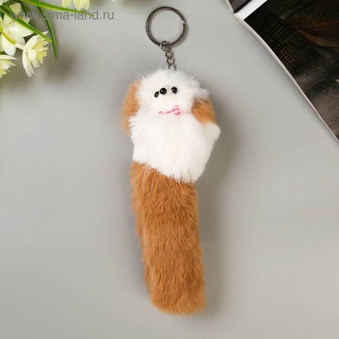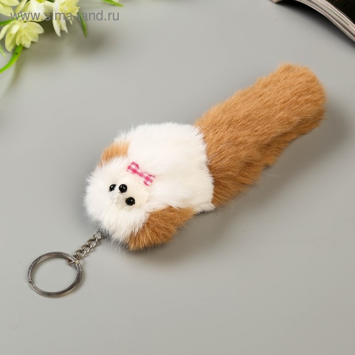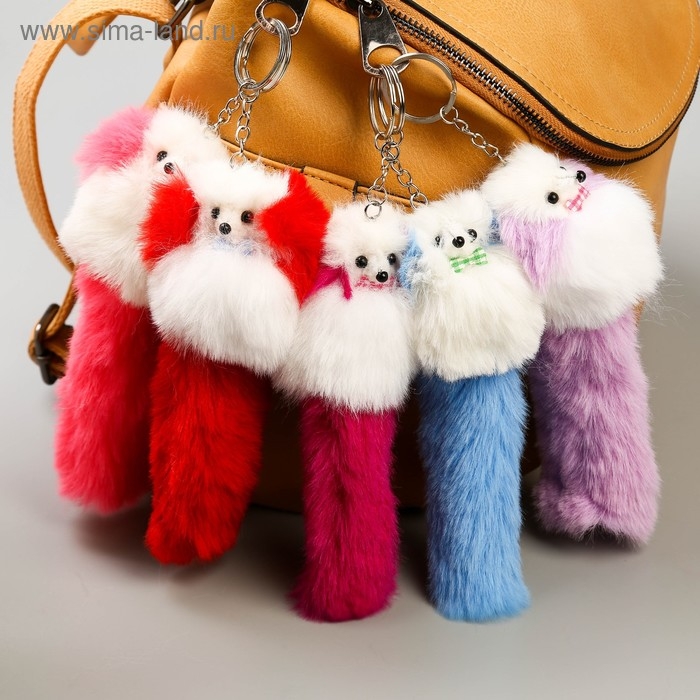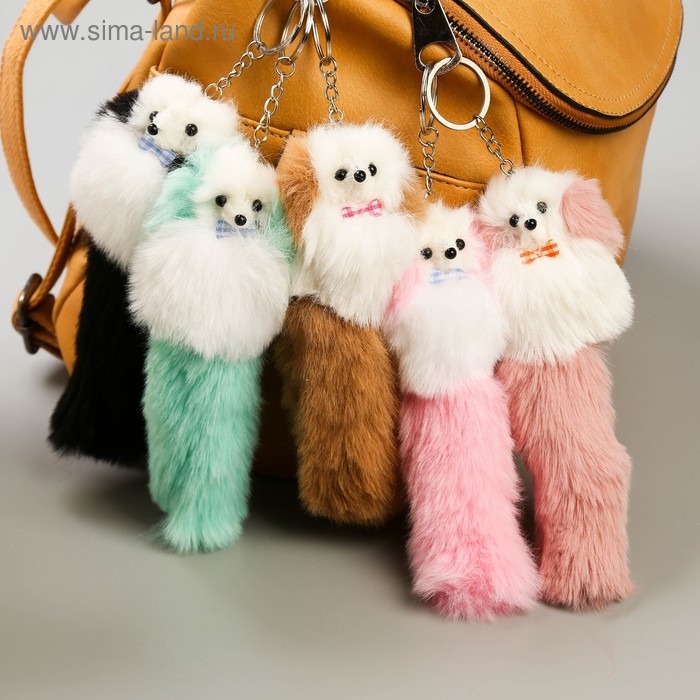 Пушистик на кольце "Пудель с цветными ушками и хвостом и бантиком" МИКС 18,5х6х5 см