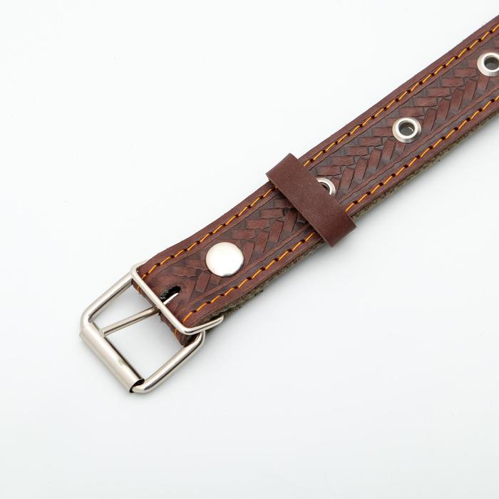 Ошейник кожаный с тиснением на синтепоне, 65 х 3 см, ОШ 40-55 см, красный