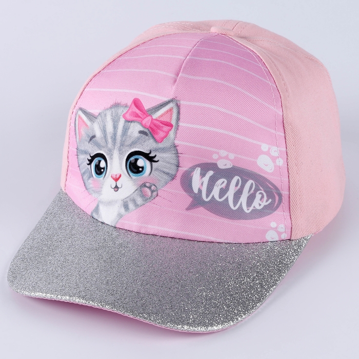 Кепка детская для девочки Hello, котик, р-р. 52-54, 5-7 лет