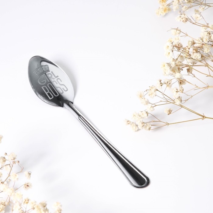 Ложка чайная с гравировкой «Girl boss», на подарочной открытке, 3 х 14 см.