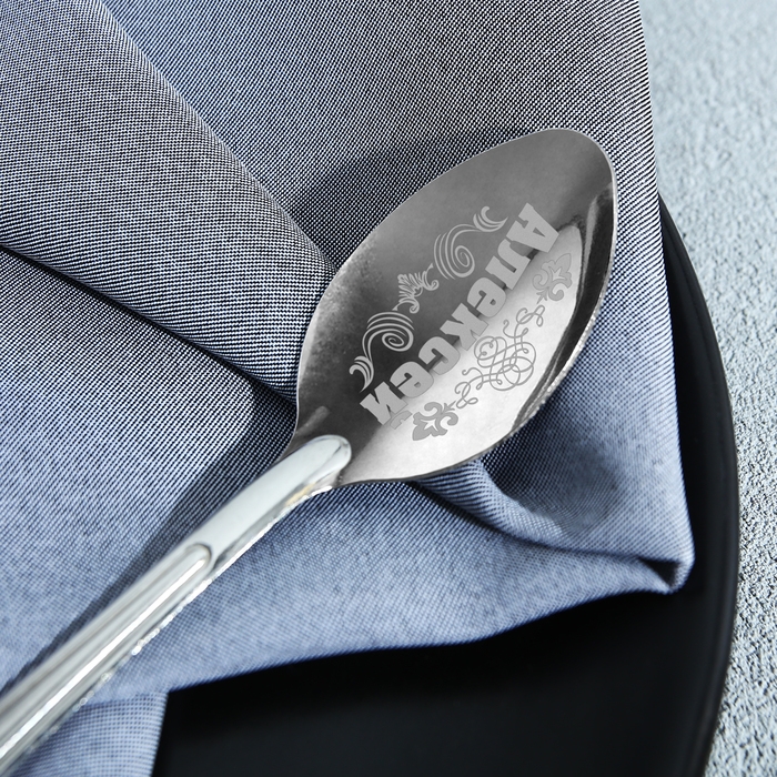 Ложка с лазерной гравировкой и изящной рукояткой преподносится на красочной открытке. На оборотной стороне изделия специально отведено место для подписи: кому и от кого был вручён подарок.