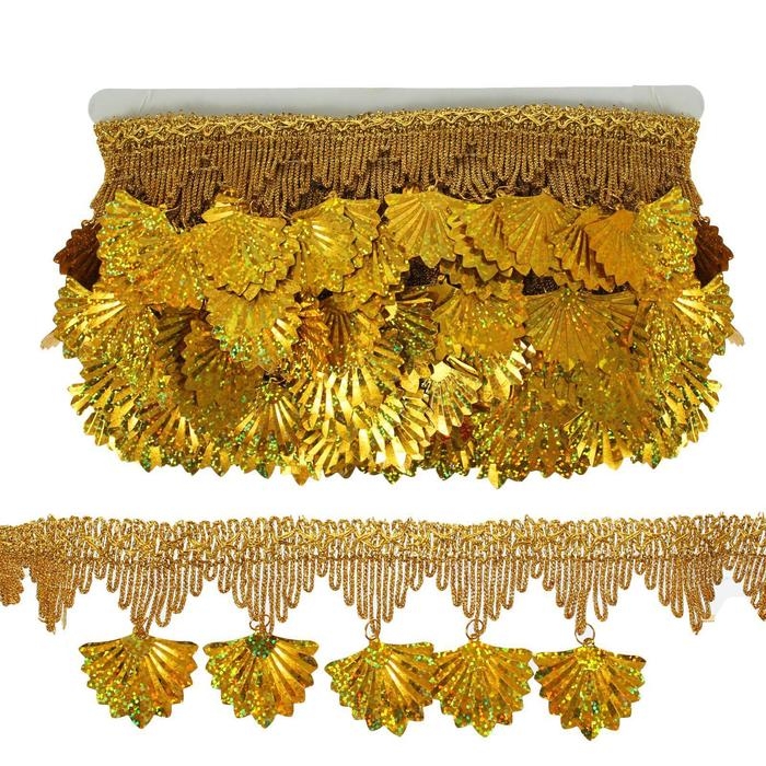 Тесьма с висюльками, ширина 7,5 см., в рулоне 10 м., золотая