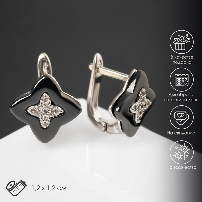 Серьги керамика «Цветок», цвет чёрно-белый в серебре