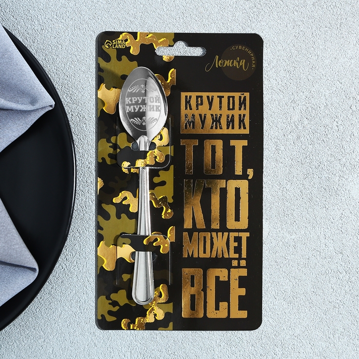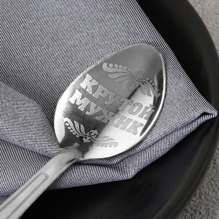 Ложка чайная с гравировкой «Крутой мужик», на подарочной открытке, 3 х 14 см.