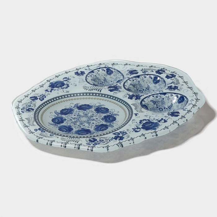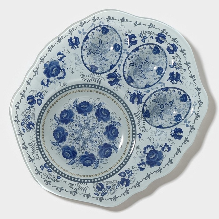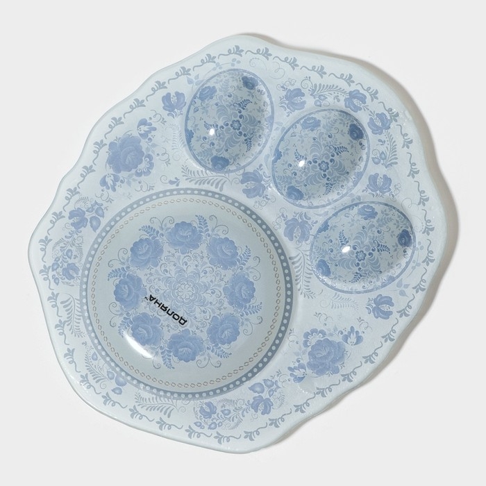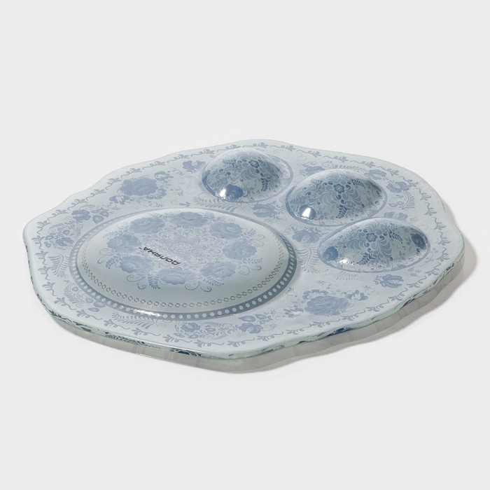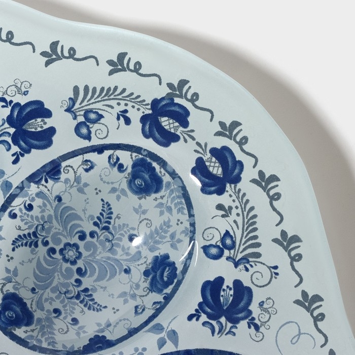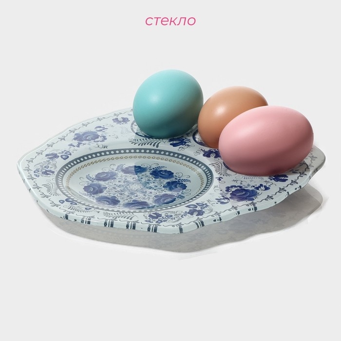 Подставка стеклянная для яиц Доляна «Цветочная роспись», 3 ячейки, 21×18 см, цвет белый