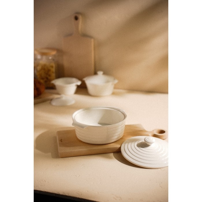 Кастрюля из жаропрочной керамики Доляна «Бруно», 1,57 л, 24,5×21,5×8 см, цвет белый