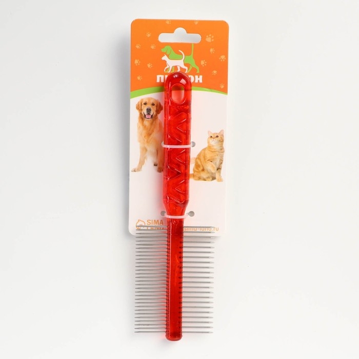 Расческа предназначена для тщательного ухода за шерстью кошек и собак. Она легко удаляет частички пыли и грязи с шерсти животного, не повреждая поверхность кожи и не травмируя структуру шерсти.
