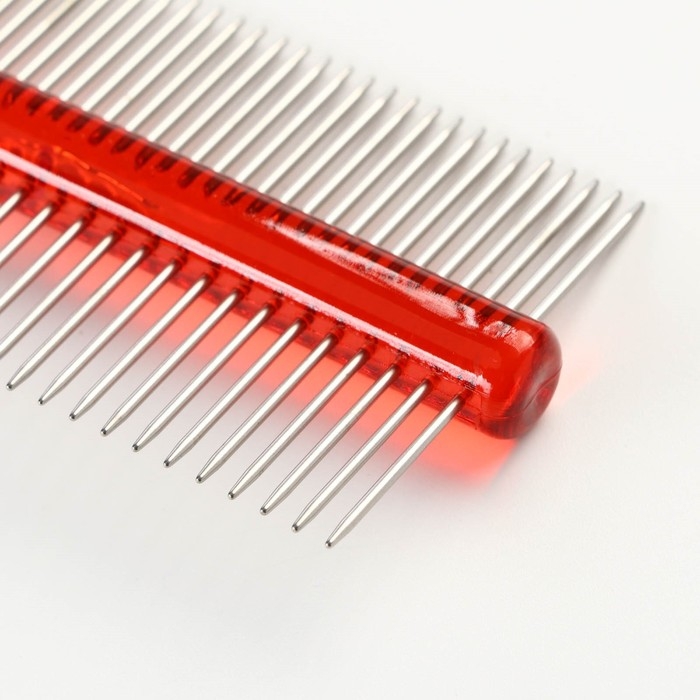 С одной стороны расчески частые зубцы, с другой - более редкие, что позволяет с ее помощью ухаживать за шерстью разных животных.