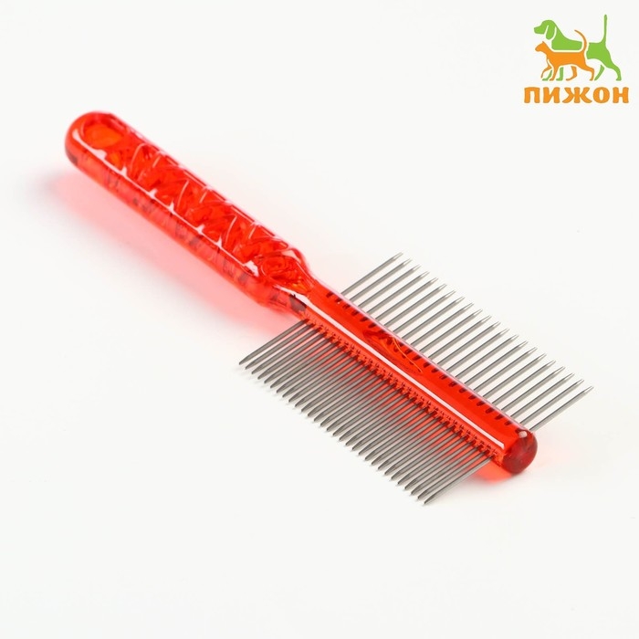 Расчёска для шерсти "Пузырьки" двухсторонняя, прозрачная, 19,5 х 5,6 см, красная