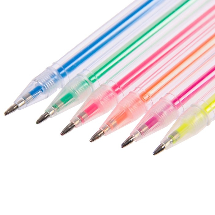 Набор гелевых ручек, 6 цветов, металлик, с блёстками, в блистере