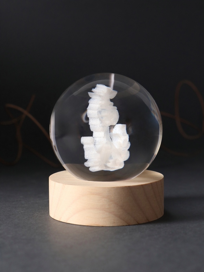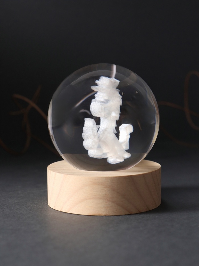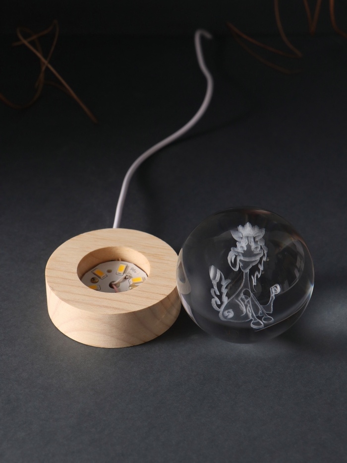 Сувенир стекло подсветка "Шар. Лошадка в короне" d=6 см подставка дерево, USB