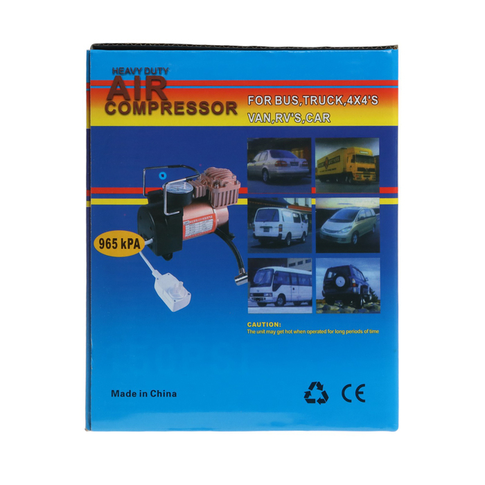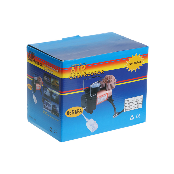 Компрессор автомобильный 15 л/мин, провод 2.6 м, шланг 45 см, 3 переходника