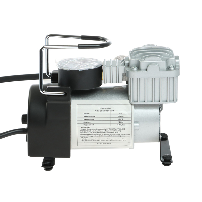 Компрессор автомобильный двухпоршневой, 12В, фонарь, 25 л/мин, сумка, черный