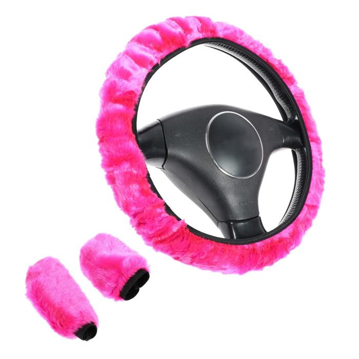 Оплетка на руль, чехол кпп, чехол ручника, мультиразмерный, розовый, набор 3 шт
