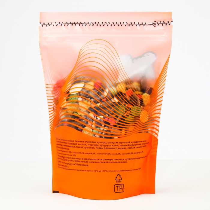 Травяная гранула, семена злаковых культур, гранулят зерновой, кукурузная мука, пшеничная мука, гороховый хлопья, морковь, кукуруза, изюм, плоды боярышника3 воздушная пшеница, семена конопли, тыква сушеная, плоды рожкового дерева, свекла, семена тыквы, яблоко, семена льна.
