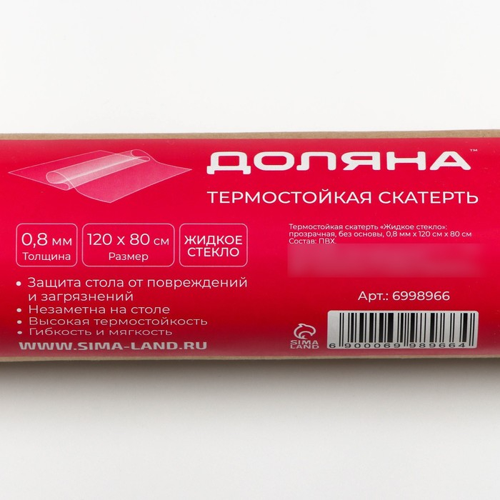 Термоскатерть без основы Доляна «Жидкое стекло», ширина 120 см, общая толщина 0,8 мм, рулон 80 м