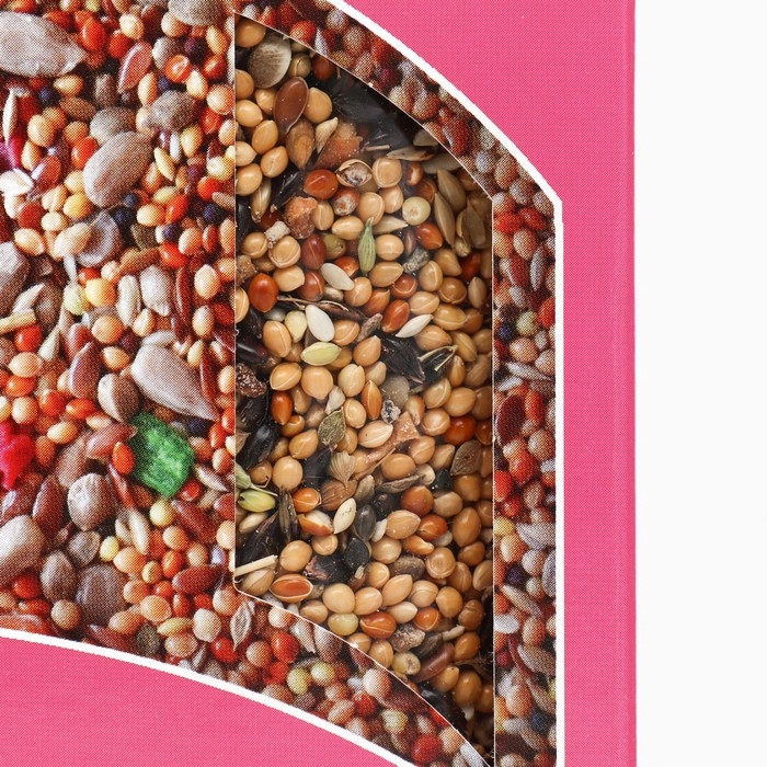 Состав: просо жёлтое, просо красное, льняное семя, канареечное семя, конопляное семя, кунжут, овсянка, пшеница, подсолнечник (очищенный), суданка, фрукты.