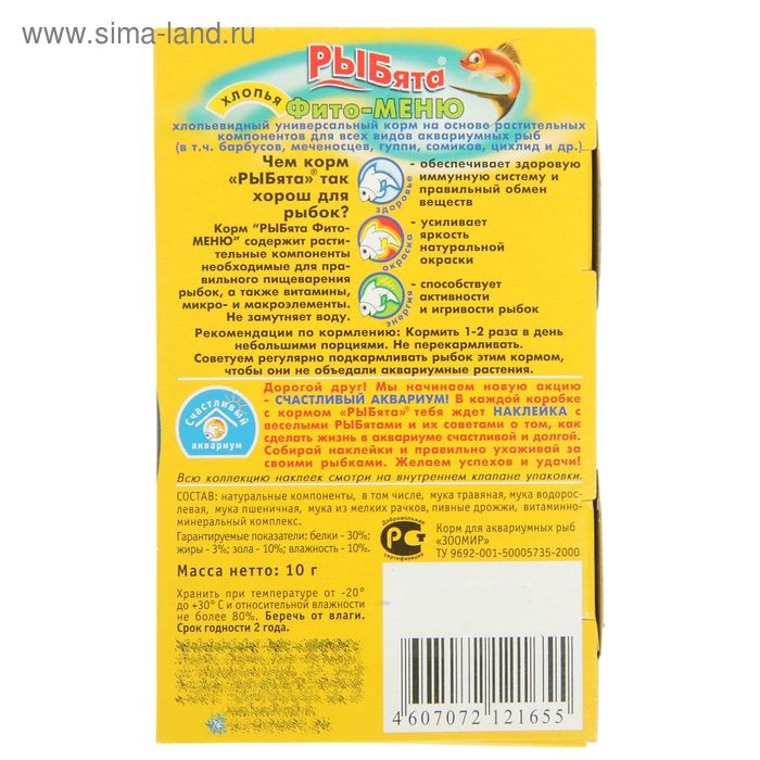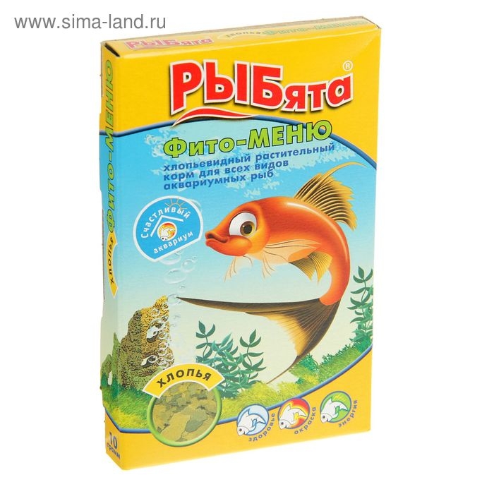 Корм растительный "РЫБята Фито-МЕНЮ" (+сюрприз) для рыб, хлопья, 10 г