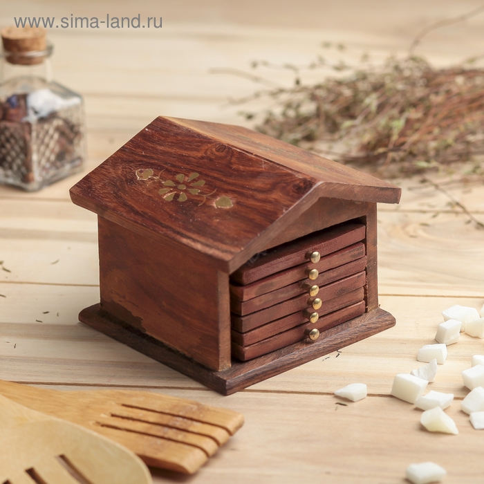 Подставка под горячее «Домик», 6 шт., 8.5×10×10 см, дерево