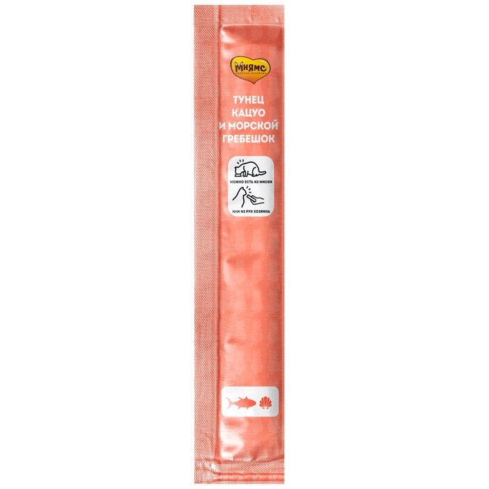 Крем-лакомство Мнямс для кошек, с тунцом Кацуо и морским гребешком, 15 г