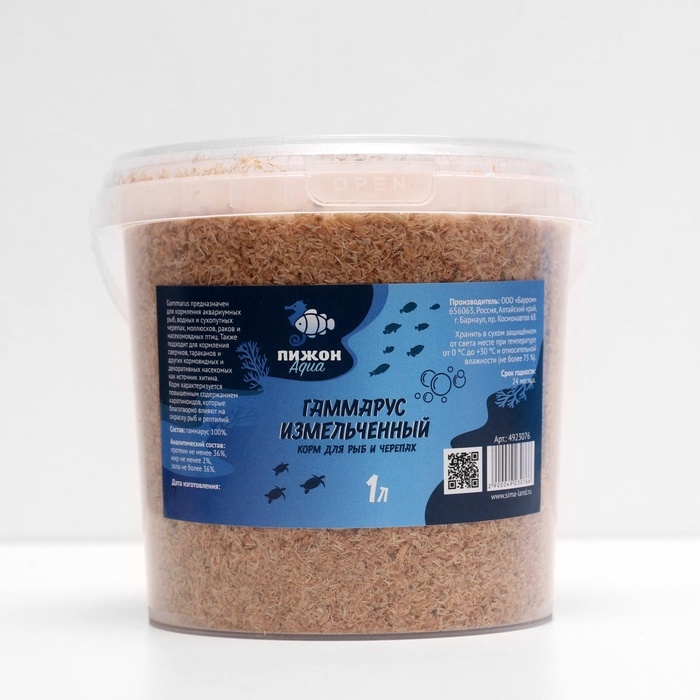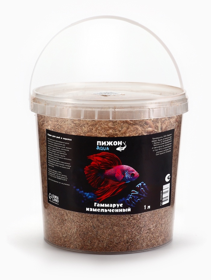 Корм для рыб и черепах "Пижон" гаммарус измельченный, 1 л