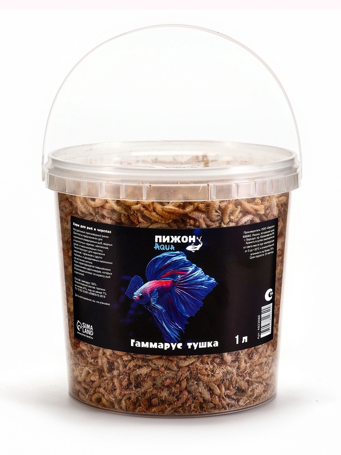 Корм для рыб и черепах "Пижон" гаммарус тушка, ведро, 1 л