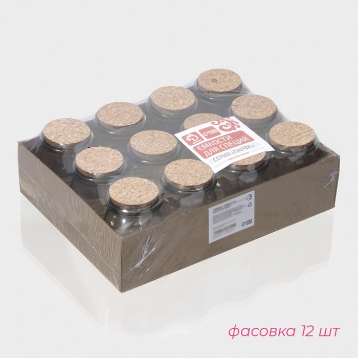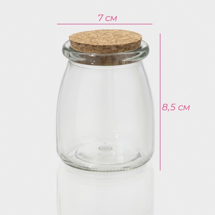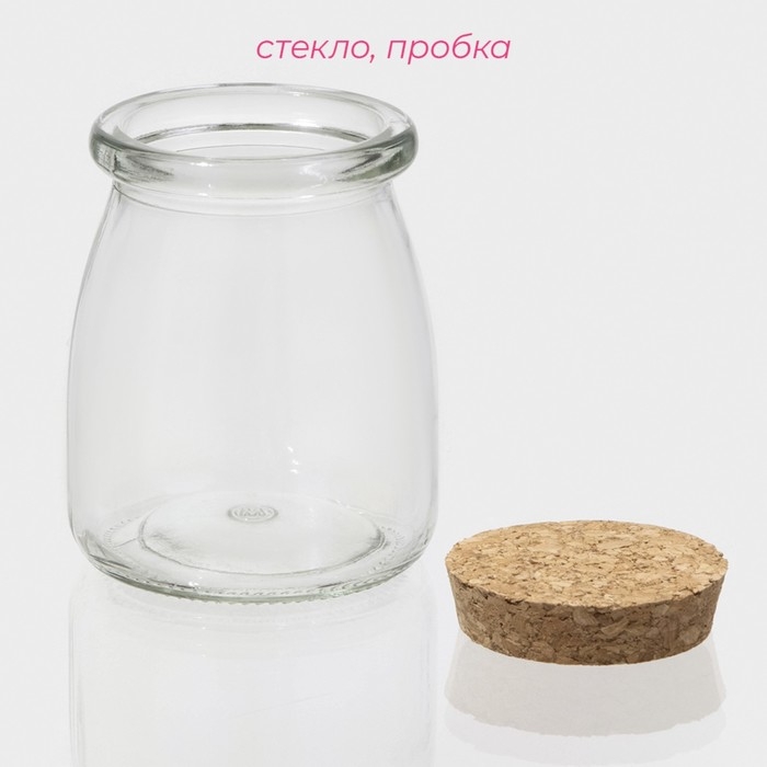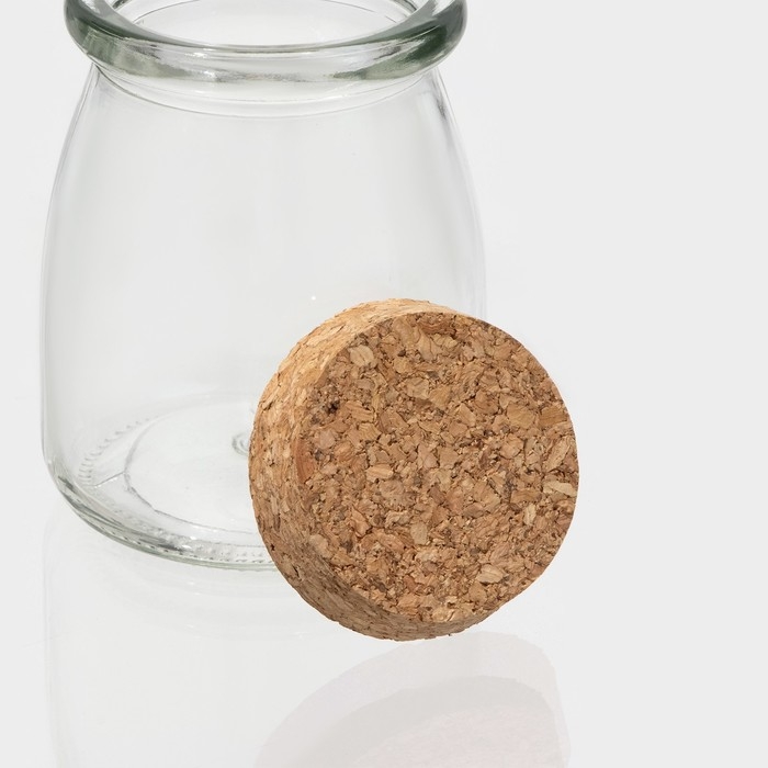 Банка стеклянная для хранения сыпучих продуктов Доляна «Парфе», 200 мл, 7×8,5 см, с пробковой крышкой