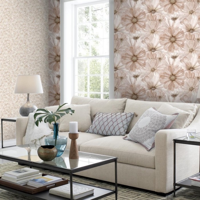 Для украшения гостиной используйте флизелиновые или жидкие обои.