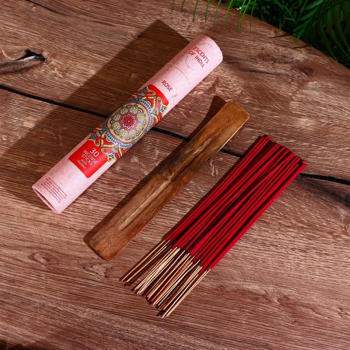 Благовония "ESCENTS OF INDIA" аромапалочки (набор 30 шт) с подставкой, роза