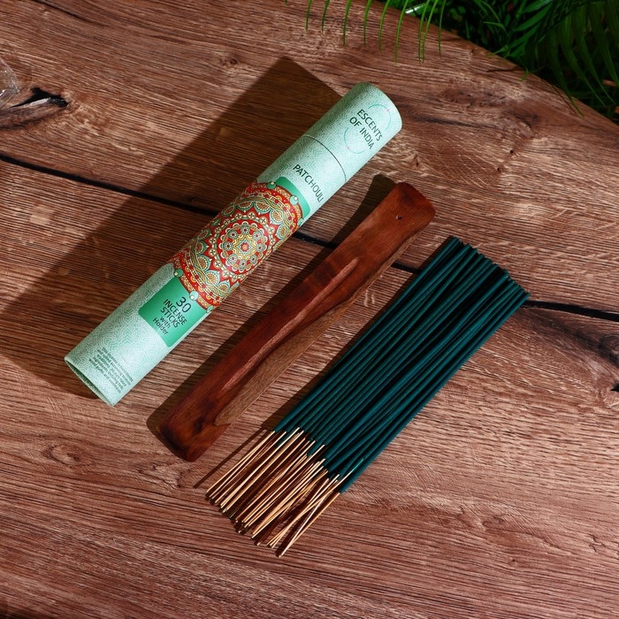 Благовония "ESCENTS OF INDIA" аромапалочки (набор 30 шт) с подставкой, пачули