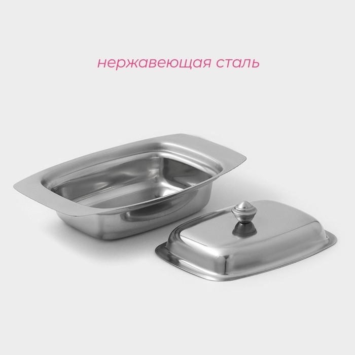 Маслёнка из нержавеющей стали Доляна, 19,5×12 см, цвет хромированный