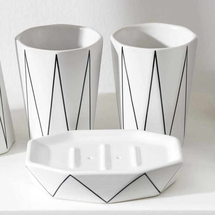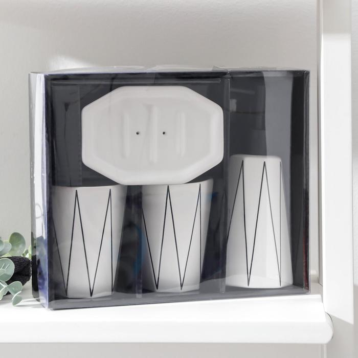 Набор для ванной комнаты «Локо», 4 предмета (дозатор для мыла 280 мл, мыльница, 2 стакана 250 мл), цвет белый