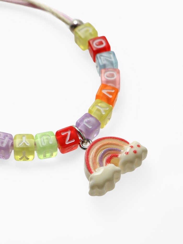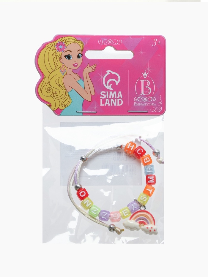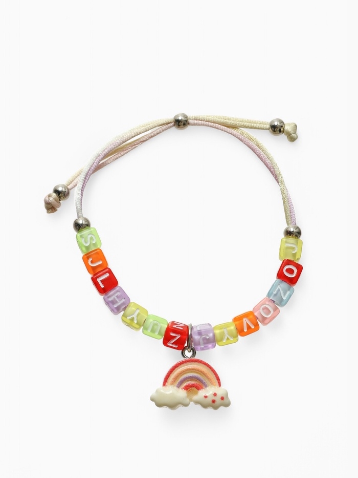 Браслет детский "Выбражулька" на затяжке, радуга с бусинами, цветной