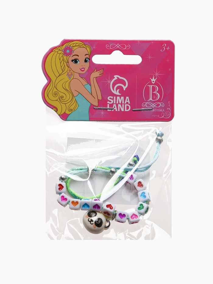 Браслет детский "Выбражулька" на затяжке, панда с бусинами, цветной