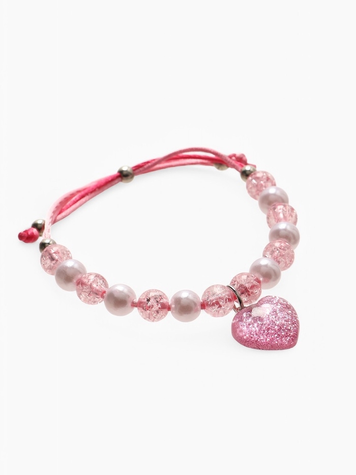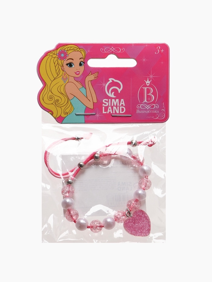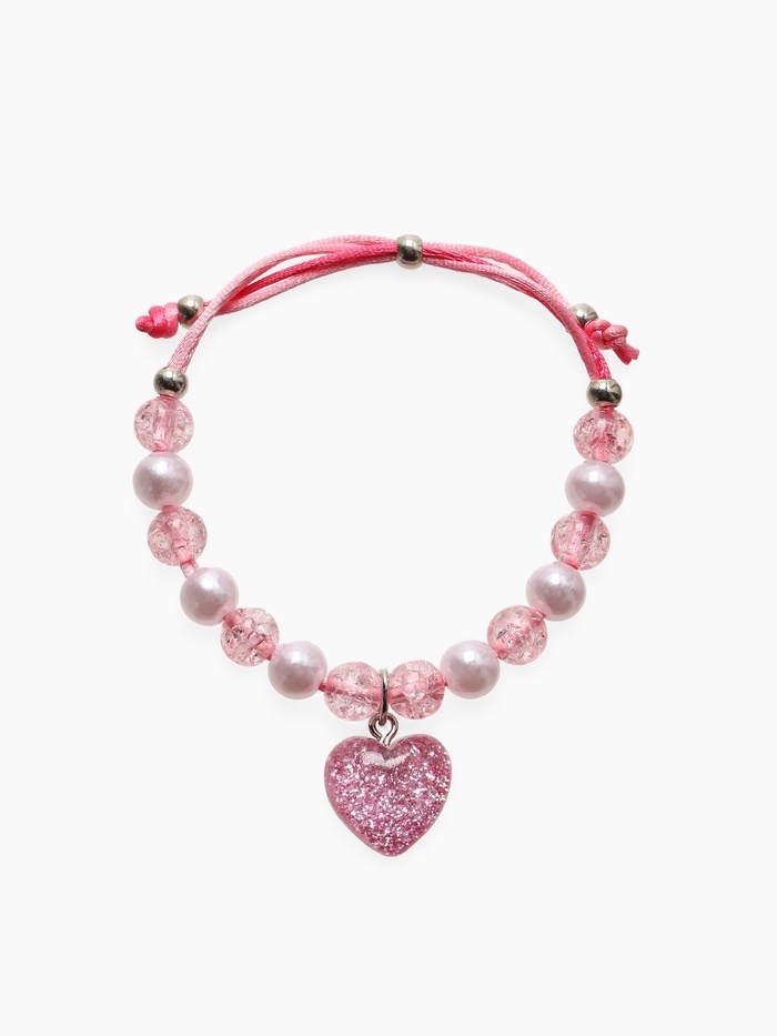 Браслет детский "Выбражулька" на затяжке, сердце с бусинами, цвет розовый