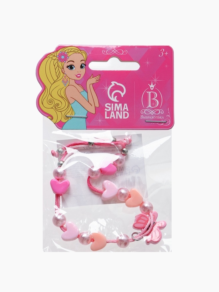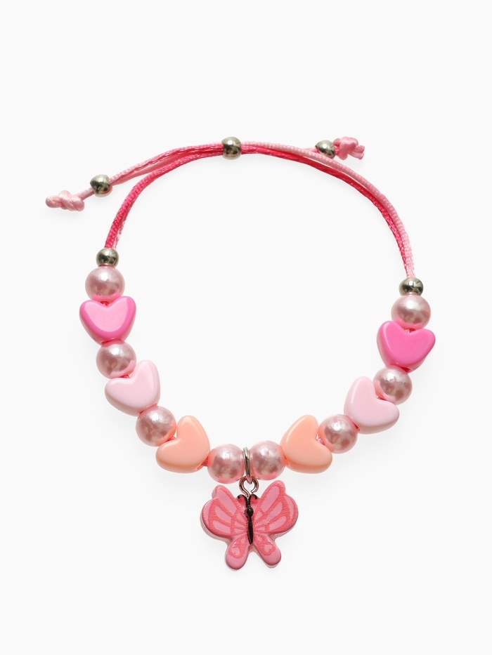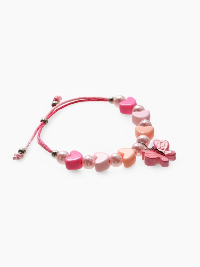 Браслет детский "Выбражулька" на затяжке, бабочка с бусинами сердце, цвет розовый