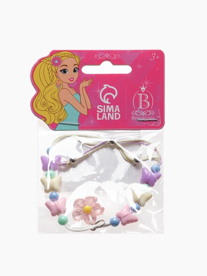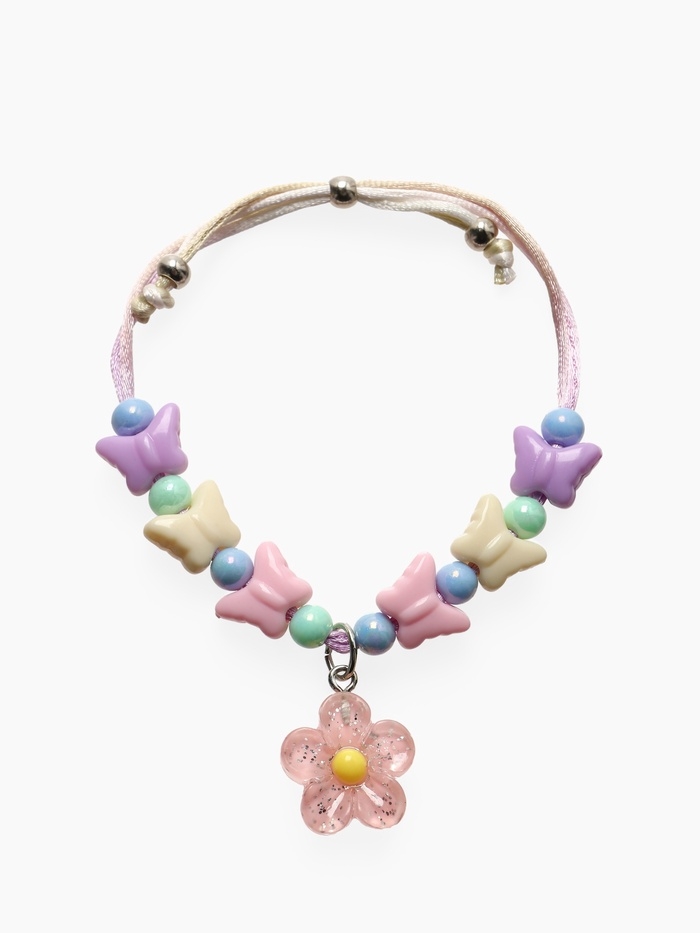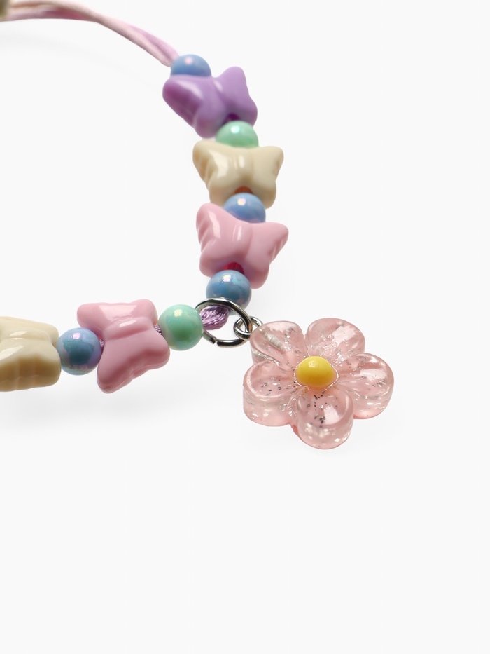 Браслет детский "Выбражулька" на затяжке,, цветок с бусинами бабочки, цветной