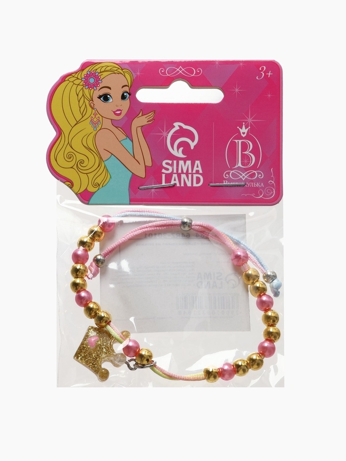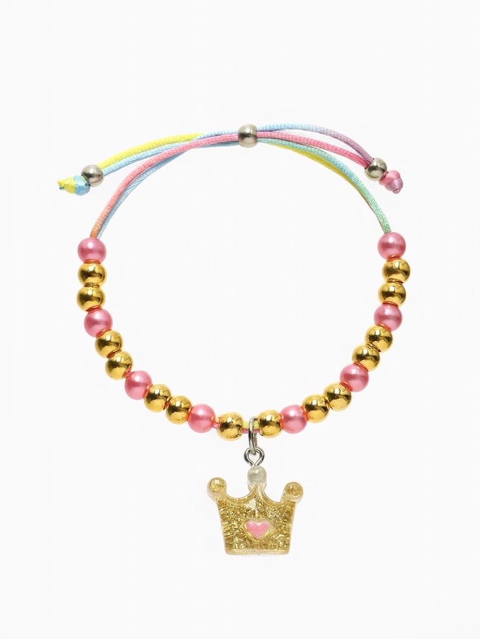 Браслет детский "Выбражулька" на затяжке, корона с бусинами, цветной
