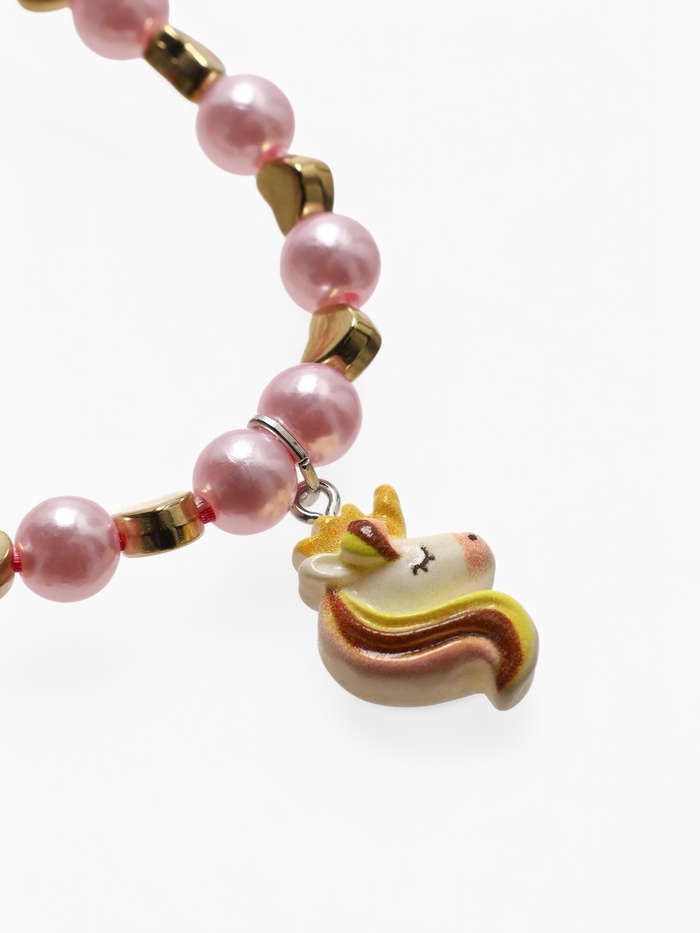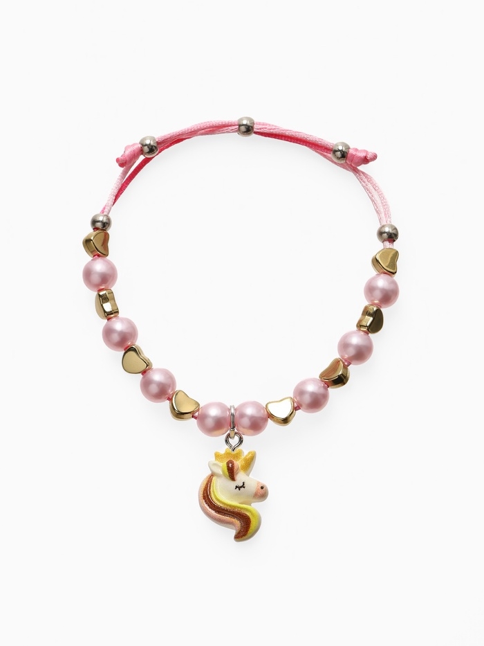 Браслет детский "Выбражулька" на затяжке, единорог с бусинами, цветной