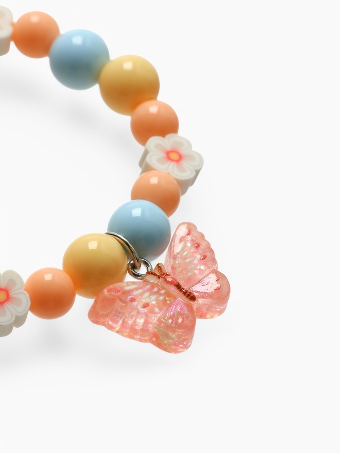 Браслет детский "Выбражулька" фимо с бусинами, бабочка с бусинами, цветной