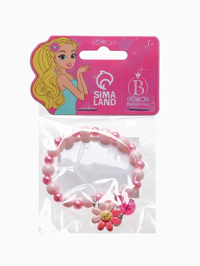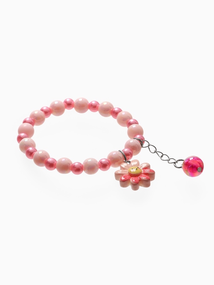 Браслет детский "Выбражулька" бусина на цепочке и цветок, цветной