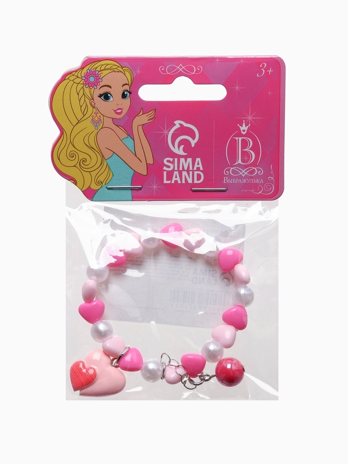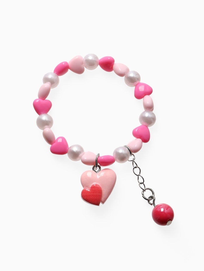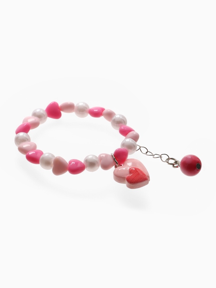 Браслет детский "Выбражулька" бусина на цепочке и сердце, цвет розово-белый